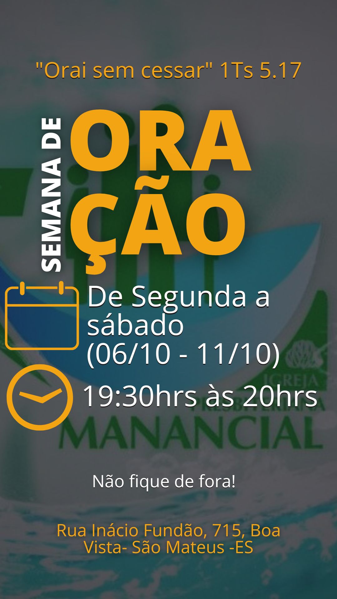 Vamos juntos buscar a presença de Deus, intercedendo pela igreja, pelas famílias e pela nossa cidade.